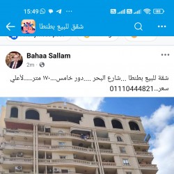شقة ١٧٠ متر شارع البحر بطنطا 01110444821 دور خامس أربعة اسانسير ثلاث غرف اتنين حمام نصف تشطيب